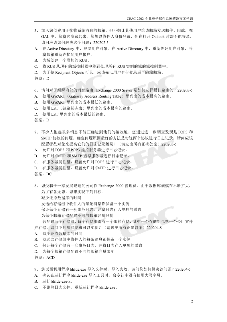 CEAC-2202企业电子邮件系统解决方案样题348072@abc1个月前发布关注私信56.50KB3页036CEAC-2202企业电子邮件系统解决方案样题此内容为付费资源,请付费后查看¥11¥16黄金会员免费钻石会员免费立即购买您当前未登录!建议登陆后购买,可保存购买订单付费资源 第1页 / 共3页 第2页 / 共3页 试读已结束,还剩1页,您可下载完整版后进行离线阅读 THE END初中教育小学教育满分作文高中教育高考真题 喜欢就支持一下吧收藏