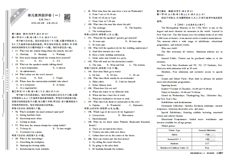 2025-2026(下)全品智能作业高中英语选择性必修第三册RJ(素养测评卷)348072@abc1个月前发布关注私信17.85MB5页0382025-2026(下)全品智能作业高中英语选择性必修第三册RJ(素养测评卷)此内容为付费资源,请付费后查看¥11¥16黄金会员免费钻石会员免费立即购买您当前未登录!建议登陆后购买,可保存购买订单付费资源 第1页 / 共5页 第2页 / 共5页 试读已结束,还剩3页,您可下载完整版后进行离线阅读 THE END小学教育满分作文高中教育高考真题 喜欢就支持一下吧收藏