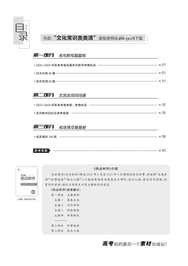 2025全品高考第二轮专题语文(特色专项)348072@abc31天前发布关注私信9.02MB17页04582025全品高考第二轮专题语文(特色专项)此内容为付费资源,请付费后查看¥11¥16黄金会员免费钻石会员免费立即购买您当前未登录!建议登陆后购买,可保存购买订单付费资源 第1页 / 共17页 第2页 / 共17页 试读已结束,还剩15页,您可下载完整版后进行离线阅读 © 版权声明文章版权归作者所有,未经允许请勿转载。THE END小学教育满分作文高中教育高考真题 喜欢就支持一下吧点赞8 分享QQ空间微博QQ好友海报分享复制链接收藏