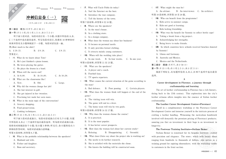 2025全品模拟冲刺卷英语(B信息卷)348072@abc1个月前发布关注私信45.37MB5页0402025全品模拟冲刺卷英语(B信息卷)此内容为付费资源,请付费后查看¥11¥16黄金会员免费钻石会员免费立即购买您当前未登录!建议登陆后购买,可保存购买订单付费资源 第1页 / 共5页 第2页 / 共5页 试读已结束,还剩3页,您可下载完整版后进行离线阅读 THE END小学教育满分作文高中教育高考真题 喜欢就支持一下吧收藏