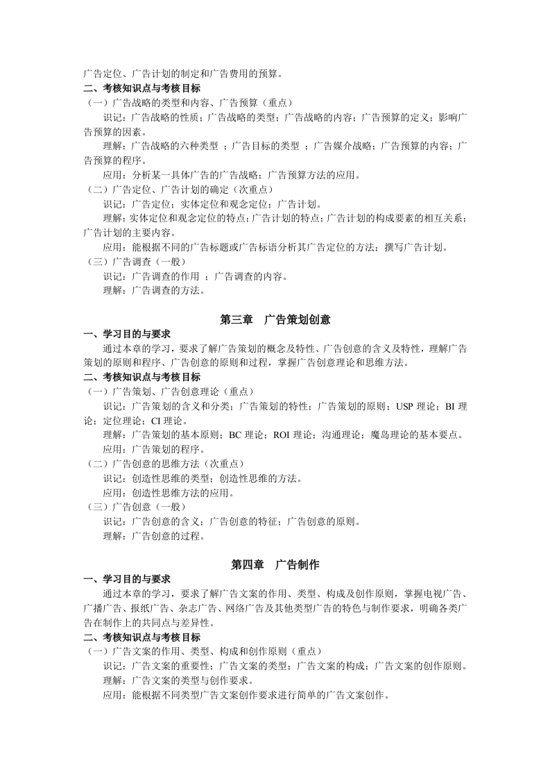 04099广告策划(一)自学考试大纲348072@abc29天前发布关注私信42KB8页027604099广告策划(一)自学考试大纲此内容为付费资源,请付费后查看¥13¥19黄金会员免费钻石会员免费立即购买您当前未登录!建议登陆后购买,可保存购买订单付费资源 第1页 / 共8页 第2页 / 共8页 试读已结束,还剩6页,您可下载完整版后进行离线阅读 © 版权声明文章版权归作者所有,未经允许请勿转载。THE END招生策划教育学类文学类标准规范法学类法律法规活动策划理学类管理学类经济学类规章制度 喜欢就支持一下吧点赞6 分享QQ空间微博QQ好友海报分享复制链接收藏