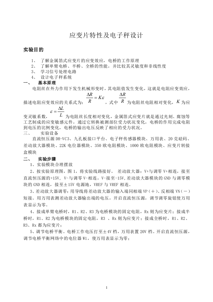DH-SJ7应变片特性及电子秤设计实验仪实验指导书348072@abc1个月前发布关注私信0.39MB6页038DH-SJ7应变片特性及电子秤设计实验仪实验指导书此内容为付费资源,请付费后查看¥16¥23黄金会员免费钻石会员免费立即购买您当前未登录!建议登陆后购买,可保存购买订单付费资源 第1页 / 共6页 第2页 / 共6页 试读已结束,还剩4页,您可下载完整版后进行离线阅读 THE END工学类教育学类文学类法学类理学类管理学类经济学类艺术学类 喜欢就支持一下吧收藏