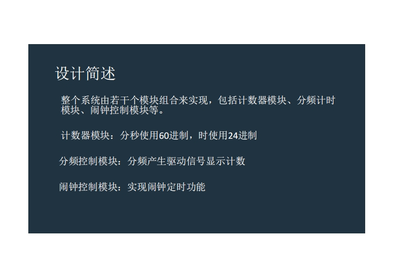 5-王涛_肖丰奇_吴作鹏-数字闹钟系统设计-slide348072@abc1个月前发布关注私信0.65MB16页0305-王涛_肖丰奇_吴作鹏-数字闹钟系统设计-slide此内容为付费资源,请付费后查看¥13¥23黄金会员免费钻石会员免费立即购买您当前未登录!建议登陆后购买,可保存购买订单付费资源 第1页 / 共16页 第2页 / 共16页 第3页 / 共16页 第4页 / 共16页 试读已结束,还剩12页,您可下载完整版后进行离线阅读 THE END医学类医疗医药单片机设计历史学类哲学类土木工程工学类教育学类文学类法学类理学类管理学类经济学类艺术学类 喜欢就支持一下吧收藏