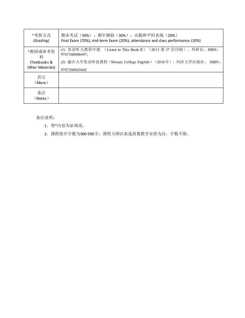 EN229《英语视听说(1)》课程教学大纲348072@abc1个月前发布关注私信84KB4页044EN229《英语视听说(1)》课程教学大纲此内容为付费资源,请付费后查看¥13¥19黄金会员免费钻石会员免费立即购买您当前未登录!建议登陆后购买,可保存购买订单付费资源 第1页 / 共4页 第2页 / 共4页 第3页 / 共4页 第4页 / 共4页 已完成全部阅读,共4页 THE END医学类医疗医药单片机设计历史学类品牌营销哲学类土木工程学习资源学术论文工学类教育学类文学类法学类理学类管理学类经济学类艺术学类 喜欢就支持一下吧收藏