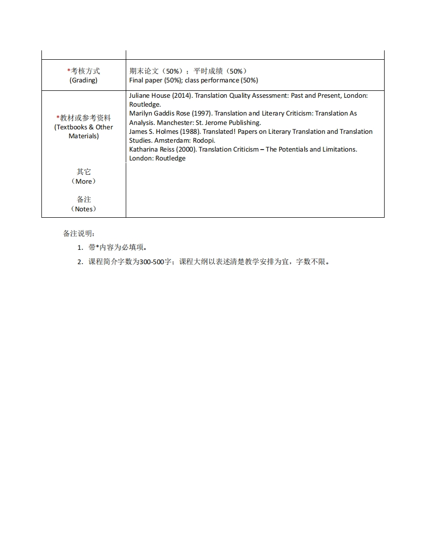 EN399《翻译批评与赏析》课程教学大纲348072@abc1个月前发布关注私信0.16MB3页050EN399《翻译批评与赏析》课程教学大纲此内容为付费资源,请付费后查看¥13¥19黄金会员免费钻石会员免费立即购买您当前未登录!建议登陆后购买,可保存购买订单付费资源 第1页 / 共3页 第2页 / 共3页 第3页 / 共3页 已完成全部阅读,共3页 THE END医学类医疗医药单片机设计历史学类品牌营销哲学类土木工程学习资源学术论文工学类教育学类文学类法学类理学类管理学类经济学类艺术学类 喜欢就支持一下吧收藏