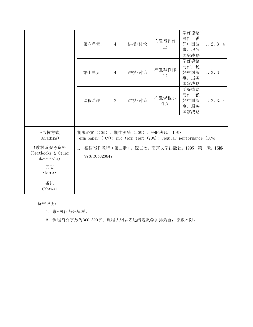 FL2508《德语写作(2)》课程教学大纲348072@abc1个月前发布关注私信55.50KB3页034FL2508《德语写作(2)》课程教学大纲此内容为付费资源,请付费后查看¥11¥19黄金会员免费钻石会员免费立即购买您当前未登录!建议登陆后购买,可保存购买订单付费资源 第1页 / 共3页 第2页 / 共3页 第3页 / 共3页 已完成全部阅读,共3页 THE END农学类医学类医疗医药单片机设计历史学类品牌营销哲学类土木工程学习资源学术论文安卓开发实习实践实用范文工学类教育学类文学类法学类理学类管理学类经济学类艺术学类 喜欢就支持一下吧收藏