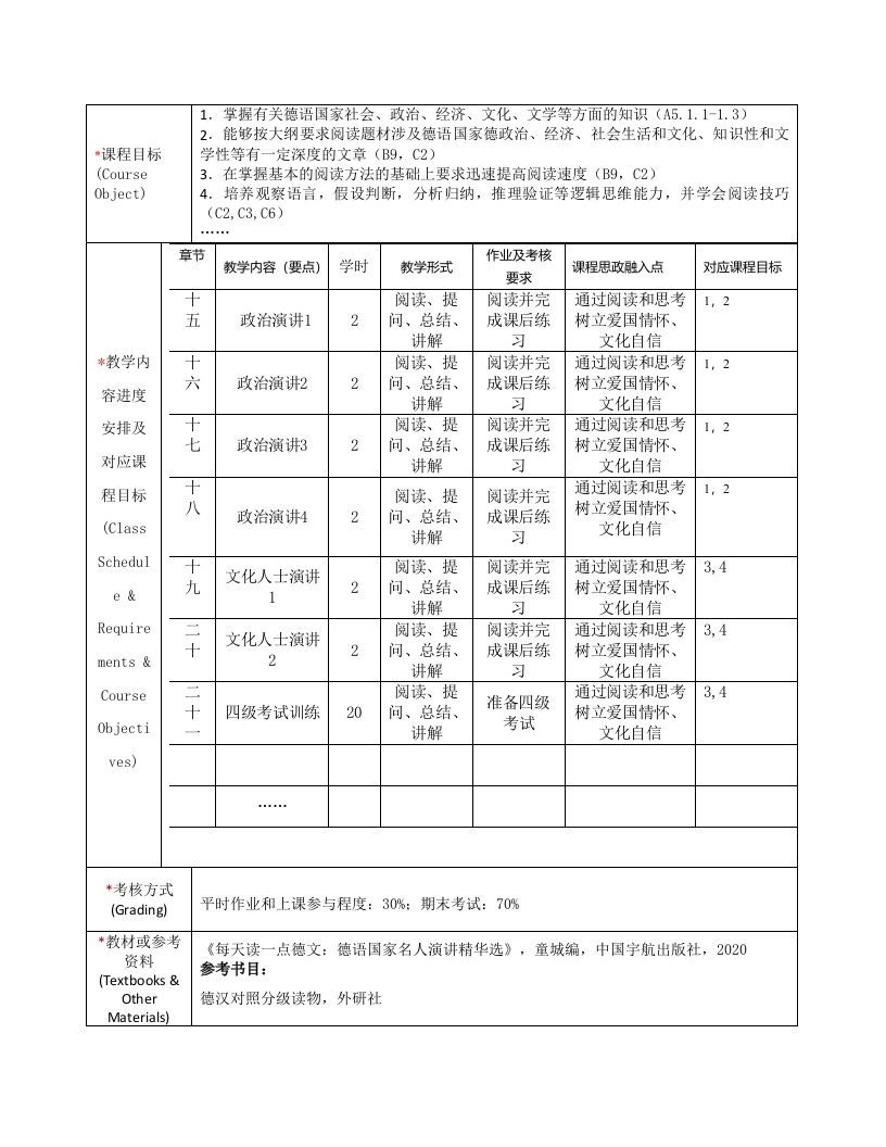 FL2509《德语泛读(2)》课程教学大纲348072@abc29天前发布关注私信61KB3页0445FL2509《德语泛读(2)》课程教学大纲此内容为付费资源,请付费后查看¥11¥19黄金会员免费钻石会员免费立即购买您当前未登录!建议登陆后购买,可保存购买订单付费资源 第1页 / 共3页 第2页 / 共3页 第3页 / 共3页 已完成全部阅读,共3页 © 版权声明文章版权归作者所有,未经允许请勿转载。THE END农学类医学类医疗医药单片机设计历史学类品牌营销哲学类土木工程学习资源学术论文安卓开发实习实践实用范文工学类教育学类文学类法学类理学类管理学类经济学类艺术学类 喜欢就支持一下吧点赞5 分享QQ空间微博QQ好友海报分享复制链接收藏