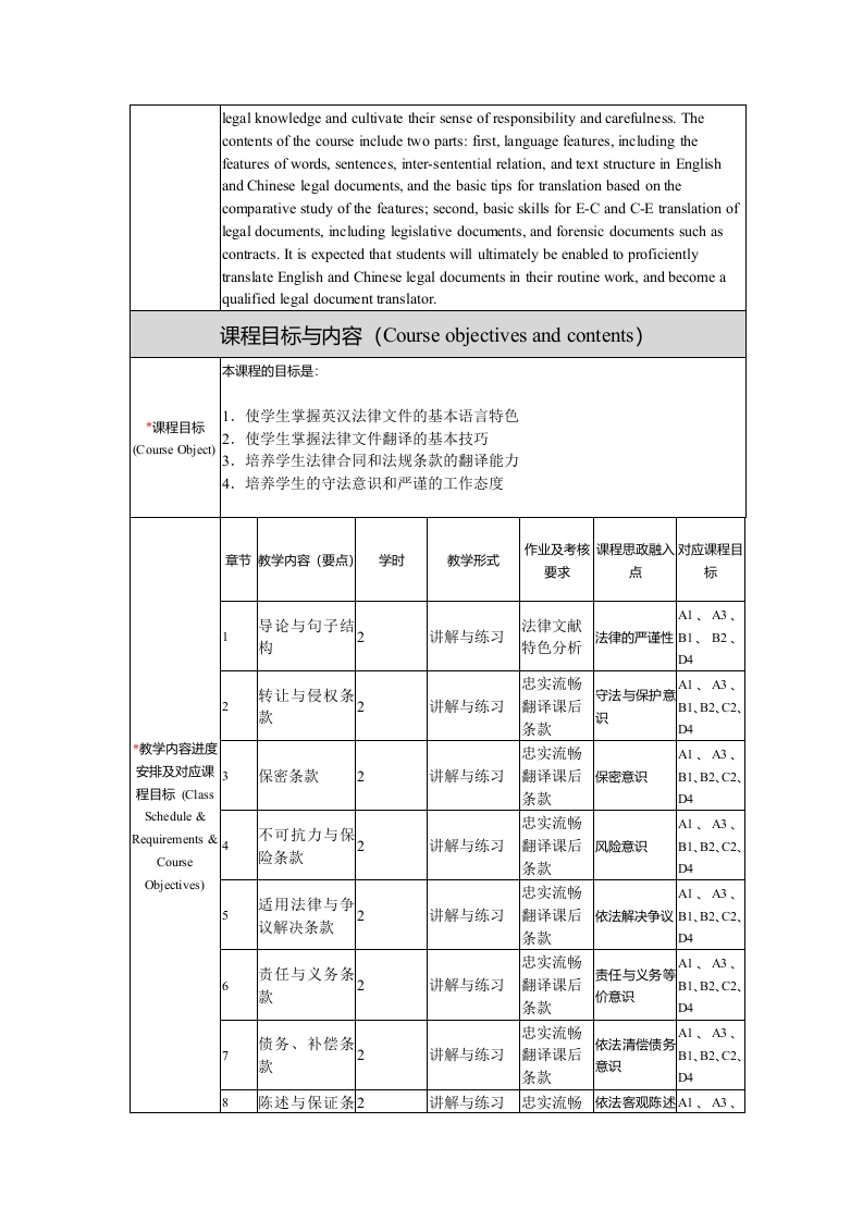 FL4309法律翻译新课程教学大纲(1)348072@abc1个月前发布关注私信26.70KB4页049FL4309法律翻译新课程教学大纲(1)此内容为付费资源,请付费后查看¥11¥19黄金会员免费钻石会员免费立即购买您当前未登录!建议登陆后购买,可保存购买订单付费资源 第1页 / 共4页 第2页 / 共4页 第3页 / 共4页 第4页 / 共4页 已完成全部阅读,共4页 THE END农学类医学类医疗医药单片机设计历史学类品牌营销哲学类土木工程学习资源学术论文安卓开发实习实践实用范文工学类教育学类文学类法学类理学类管理学类经济学类艺术学类 喜欢就支持一下吧收藏