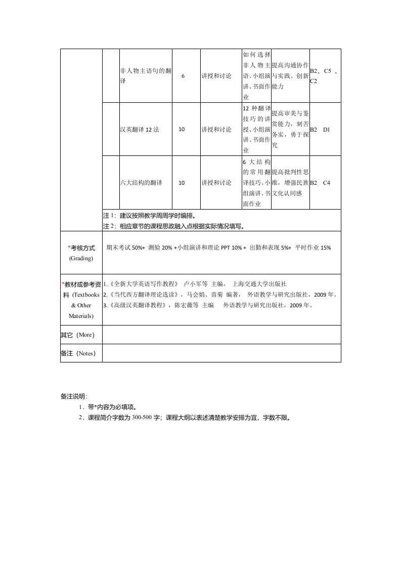 FL5201《大学英语(5)汉英翻译实务》课程教学大纲348072@abc24天前发布关注私信27.59KB3页0335FL5201《大学英语(5)汉英翻译实务》课程教学大纲此内容为付费资源,请付费后查看¥11¥19黄金会员免费钻石会员免费立即购买您当前未登录!建议登陆后购买,可保存购买订单付费资源 第1页 / 共3页 第2页 / 共3页 第3页 / 共3页 已完成全部阅读,共3页 © 版权声明文章版权归作者所有,未经允许请勿转载。THE END农学类医学类医疗医药单片机设计历史学类品牌营销哲学类土木工程学习资源学术论文安卓开发实习实践实用范文工学类教育学类文学类法学类理学类管理学类经济学类艺术学类 喜欢就支持一下吧点赞5 分享QQ空间微博QQ好友海报分享复制链接收藏