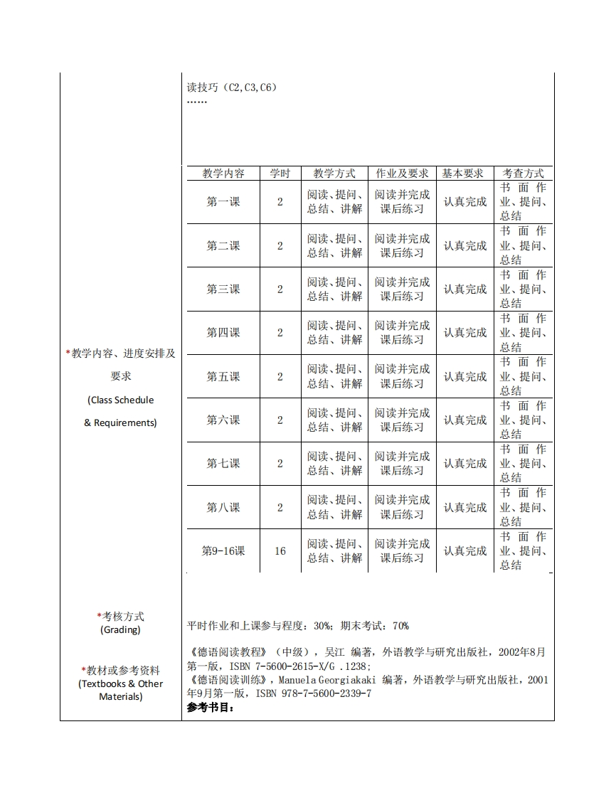 GE209《德语泛读(1)》课程教学大纲348072@abc28天前发布关注私信0.16MB3页0446GE209《德语泛读(1)》课程教学大纲此内容为付费资源,请付费后查看¥13¥16黄金会员免费钻石会员免费立即购买您当前未登录!建议登陆后购买,可保存购买订单付费资源 第1页 / 共3页 第2页 / 共3页 第3页 / 共3页 已完成全部阅读,共3页 © 版权声明文章版权归作者所有,未经允许请勿转载。THE ENDExcel表格农学类医学类医疗医药单片机设计历史学类品牌营销哲学类土木工程工学类教育学类文学类法学类管理学类经济学类艺术学类 喜欢就支持一下吧点赞6 分享QQ空间微博QQ好友海报分享复制链接收藏