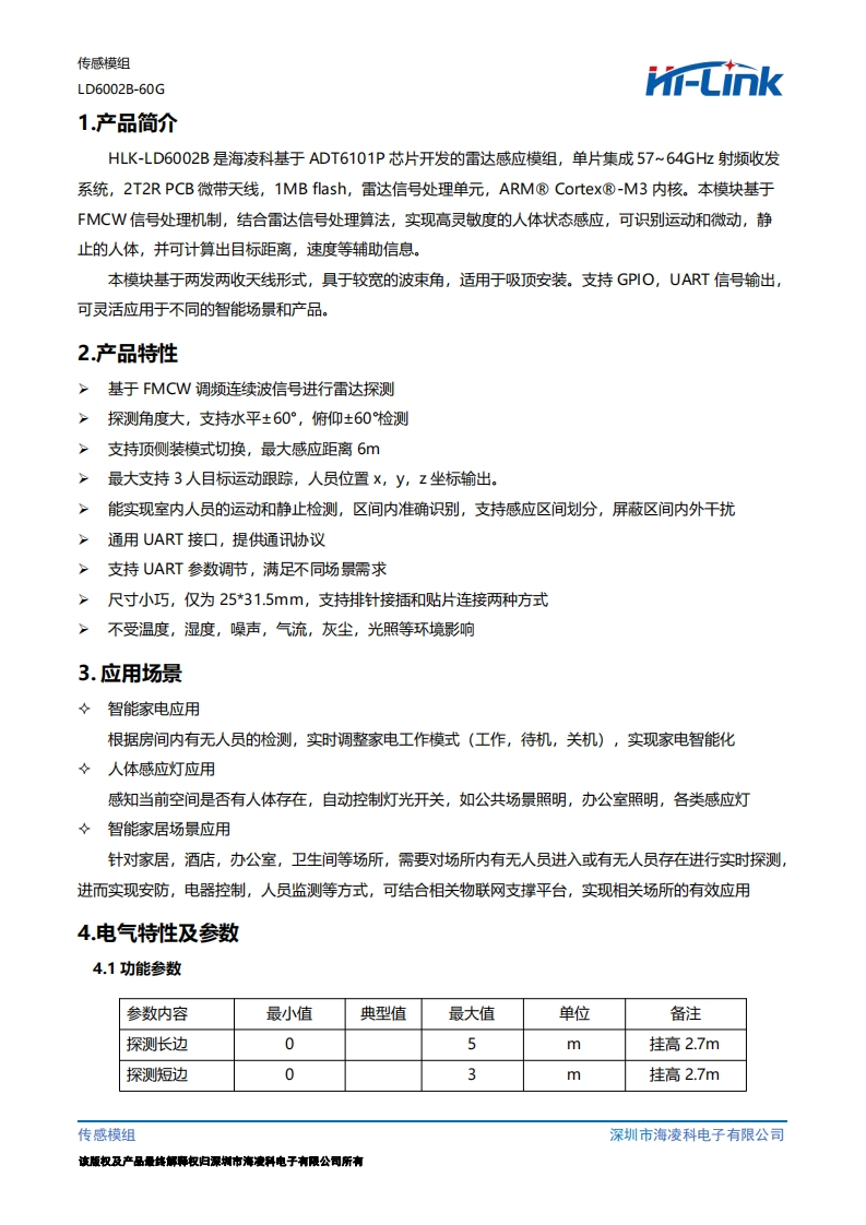 HLK-LD6002B-3D存在模组规格书V2.0348072@abc1个月前发布关注私信1.12MB13页048HLK-LD6002B-3D存在模组规格书V2.0此内容为付费资源,请付费后查看¥13¥17黄金会员免费钻石会员免费立即购买您当前未登录!建议登陆后购买,可保存购买订单付费资源 第1页 / 共13页 第2页 / 共13页 第3页 / 共13页 第4页 / 共13页 第5页 / 共13页 试读已结束,还剩8页,您可下载完整版后进行离线阅读 THE END单片机设计家居家装小程序设计机械电气设计毕业设计物联网设计网站设计网络规划设计说明书手册 喜欢就支持一下吧收藏