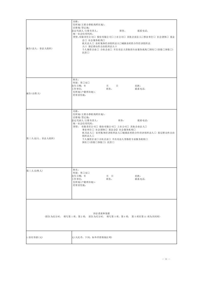 买卖合同纠纷起诉状348072@abc27天前发布关注私信19.12KB5页0399买卖合同纠纷起诉状此内容为付费资源,请付费后查看¥12¥16黄金会员免费钻石会员免费立即购买您当前未登录!建议登陆后购买,可保存购买订单付费资源 第1页 / 共5页 第2页 / 共5页 试读已结束,还剩3页,您可下载完整版后进行离线阅读 © 版权声明文章版权归作者所有,未经允许请勿转载。THE ENDPPT模板办公模板合同协议员工培训实习证明求职简历绩效考核规章制度 喜欢就支持一下吧点赞9 分享QQ空间微博QQ好友海报分享复制链接收藏