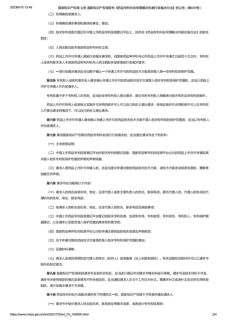 CNIPA_《药品专利纠纷早期解决机制行政裁决办法》(第435号)348072@abc2个月前发布关注私信0.66MB4页023CNIPA_《药品专利纠纷早期解决机制行政裁决办法》(第435号)此内容为付费资源,请付费后查看¥13¥19黄金会员免费钻石会员免费立即购买您当前未登录!建议登陆后购买,可保存购买订单付费资源 第1页 / 共4页 第2页 / 共4页 试读已结束,还剩2页,您可下载完整版后进行离线阅读 THE END党政宣传标准规范规章制度 喜欢就支持一下吧收藏