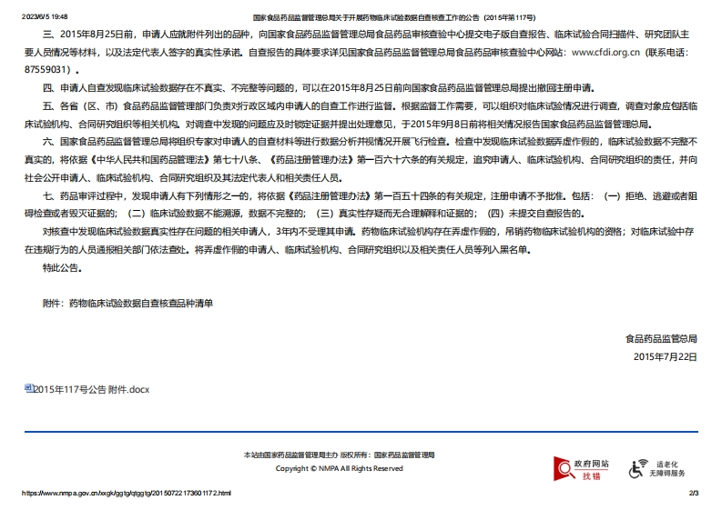 NMPA_关于开展药物临床试验数据自查核查工作的公告(2015年第117号)348072@abc26天前发布关注私信2.02MB62页04315NMPA_关于开展药物临床试验数据自查核查工作的公告(2015年第117号)此内容为付费资源,请付费后查看¥13¥19黄金会员免费钻石会员免费立即购买您当前未登录!建议登陆后购买,可保存购买订单付费资源 第1页 / 共62页 第2页 / 共62页 试读已结束,还剩60页,您可下载完整版后进行离线阅读 © 版权声明文章版权归作者所有,未经允许请勿转载。THE END学术论文 喜欢就支持一下吧点赞15 分享QQ空间微博QQ好友海报分享复制链接收藏