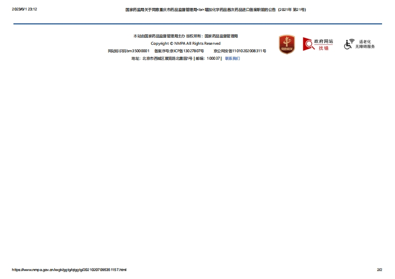 NMPA_关于同意重庆市药品监督管理局增加化学药品首次药品进口备案职能的公告(2021年第21号)348072@abc27天前发布关注私信0.15MB2页0357NMPA_关于同意重庆市药品监督管理局增加化学药品首次药品进口备案职能的公告(2021年第21号)此内容为付费资源,请付费后查看¥13¥19黄金会员免费钻石会员免费立即购买您当前未登录!建议登陆后购买,可保存购买订单付费资源 第1页 / 共2页 第2页 / 共2页 已完成全部阅读,共2页 © 版权声明文章版权归作者所有,未经允许请勿转载。THE END学术论文 喜欢就支持一下吧点赞7 分享QQ空间微博QQ好友海报分享复制链接收藏
