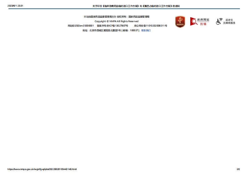 NHC_NMPA_关于印发《临床急需药品临时进口工作方案》和《氯巴占临时进口工作方案》的通知348072@abc26天前发布关注私信0.71MB13页04914NHC_NMPA_关于印发《临床急需药品临时进口工作方案》和《氯巴占临时进口工作方案》的通知此内容为付费资源,请付费后查看¥13¥19黄金会员免费钻石会员免费立即购买您当前未登录!建议登陆后购买,可保存购买订单付费资源 第1页 / 共13页 第2页 / 共13页 试读已结束,还剩11页,您可下载完整版后进行离线阅读 © 版权声明文章版权归作者所有,未经允许请勿转载。THE END党政宣传标准规范规章制度 喜欢就支持一下吧点赞14 分享QQ空间微博QQ好友海报分享复制链接收藏