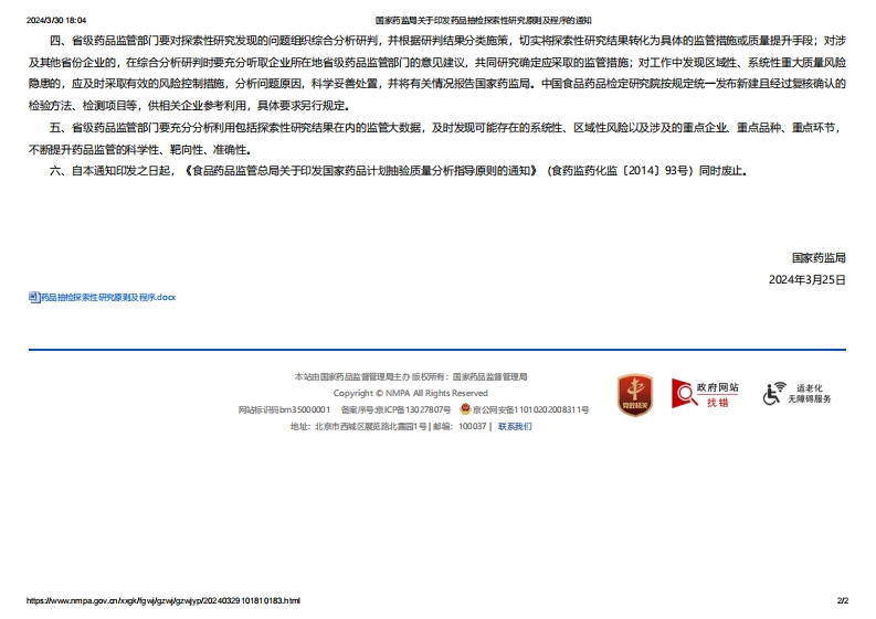 NMPA_关于印发药品抽检探索性研究原则及程序的通知348072@abc26天前发布关注私信1.04MB37页0236NMPA_关于印发药品抽检探索性研究原则及程序的通知此内容为付费资源,请付费后查看¥13¥19黄金会员免费钻石会员免费立即购买您当前未登录!建议登陆后购买,可保存购买订单付费资源 第1页 / 共37页 第2页 / 共37页 试读已结束,还剩35页,您可下载完整版后进行离线阅读 © 版权声明文章版权归作者所有,未经允许请勿转载。THE END学术论文 喜欢就支持一下吧点赞6 分享QQ空间微博QQ好友海报分享复制链接收藏