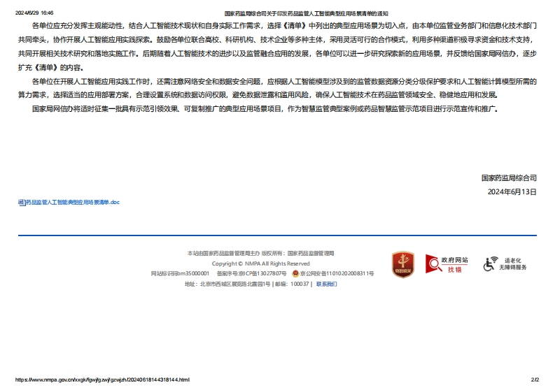 NMPA_关于印发药品监管人工智能典型应用场景清单的通知348072@abc26天前发布关注私信0.65MB11页0305NMPA_关于印发药品监管人工智能典型应用场景清单的通知此内容为付费资源,请付费后查看¥13¥19黄金会员免费钻石会员免费立即购买您当前未登录!建议登陆后购买,可保存购买订单付费资源 第1页 / 共11页 第2页 / 共11页 试读已结束,还剩9页,您可下载完整版后进行离线阅读 © 版权声明文章版权归作者所有,未经允许请勿转载。THE END学术论文 喜欢就支持一下吧点赞5 分享QQ空间微博QQ好友海报分享复制链接收藏