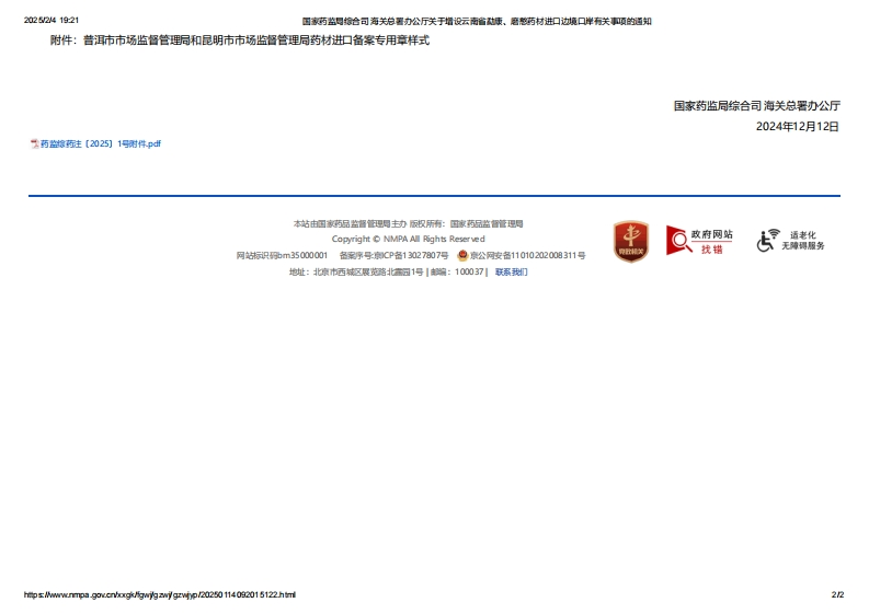 NMPA_关于增设云南省勐康、磨憨药材进口边境口岸有关事项的通知348072@abc26天前发布关注私信0.34MB3页02411NMPA_关于增设云南省勐康、磨憨药材进口边境口岸有关事项的通知此内容为付费资源,请付费后查看¥13¥19黄金会员免费钻石会员免费立即购买您当前未登录!建议登陆后购买,可保存购买订单付费资源 第1页 / 共3页 第2页 / 共3页 试读已结束,还剩1页,您可下载完整版后进行离线阅读 © 版权声明文章版权归作者所有,未经允许请勿转载。THE END学术论文 喜欢就支持一下吧点赞11 分享QQ空间微博QQ好友海报分享复制链接收藏