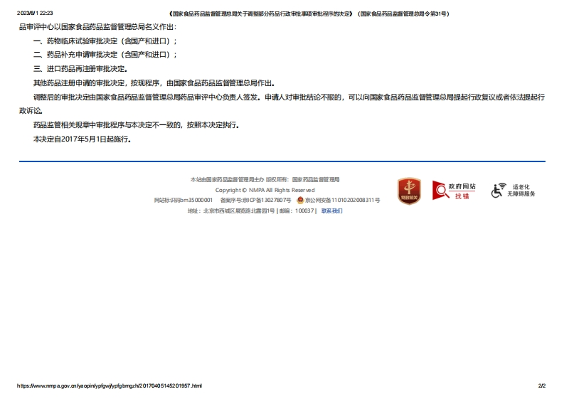 NMPA_《国家食品药品监督管理总局关于调整部分药品行政审批事项审批程序的决定》(总局令第31号)_3348072@abc25天前发布关注私信0.19MB2页0427NMPA_《国家食品药品监督管理总局关于调整部分药品行政审批事项审批程序的决定》(总局令第31号)_3此内容为付费资源,请付费后查看¥13¥19黄金会员免费钻石会员免费立即购买您当前未登录!建议登陆后购买,可保存购买订单付费资源 第1页 / 共2页 第2页 / 共2页 已完成全部阅读,共2页 © 版权声明文章版权归作者所有,未经允许请勿转载。THE END党政宣传标准规范规章制度 喜欢就支持一下吧点赞7 分享QQ空间微博QQ好友海报分享复制链接收藏