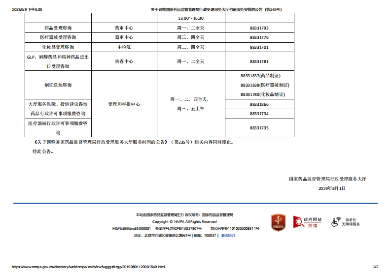 NMPA_关于调整国家药品监督管理局行政受理服务大厅咨询服务安排的公告(第245号)348072@abc1个月前发布关注私信0.19MB2页046NMPA_关于调整国家药品监督管理局行政受理服务大厅咨询服务安排的公告(第245号)此内容为付费资源,请付费后查看¥13¥19黄金会员免费钻石会员免费立即购买您当前未登录!建议登陆后购买,可保存购买订单付费资源 第1页 / 共2页 第2页 / 共2页 已完成全部阅读,共2页 THE END党政宣传标准规范规章制度 喜欢就支持一下吧收藏