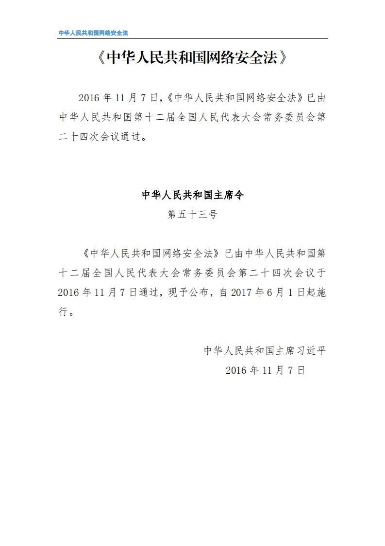 《中华人民共和国网络安全法》348072@abc3个月前发布关注私信0.29MB28页0358《中华人民共和国网络安全法》此内容为付费资源,请付费后查看¥19¥22黄金会员免费钻石会员免费立即购买您当前未登录!建议登陆后购买,可保存购买订单付费资源 第1页 / 共28页 第2页 / 共28页 试读已结束,还剩26页,您可下载完整版后进行离线阅读 © 版权声明文章版权归作者所有,未经允许请勿转载。THE END标准规范 文本预览 《中华人民共和国网络安全法》2016年11月 查看更多 收起部分 喜欢就支持一下吧点赞8 分享QQ空间微博QQ好友海报分享复制链接收藏