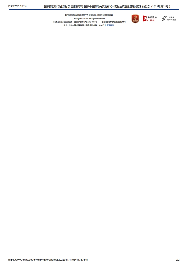 NMPA_关于发布《中药材生产质量管理规范》的公告(2022年第22号)348072@abc2个月前发布关注私信0.75MB29页020NMPA_关于发布《中药材生产质量管理规范》的公告(2022年第22号)此内容为付费资源,请付费后查看¥13¥19黄金会员免费钻石会员免费立即购买您当前未登录!建议登陆后购买,可保存购买订单付费资源 第1页 / 共29页 第2页 / 共29页 试读已结束,还剩27页,您可下载完整版后进行离线阅读 THE END党政宣传标准规范规章制度 喜欢就支持一下吧收藏