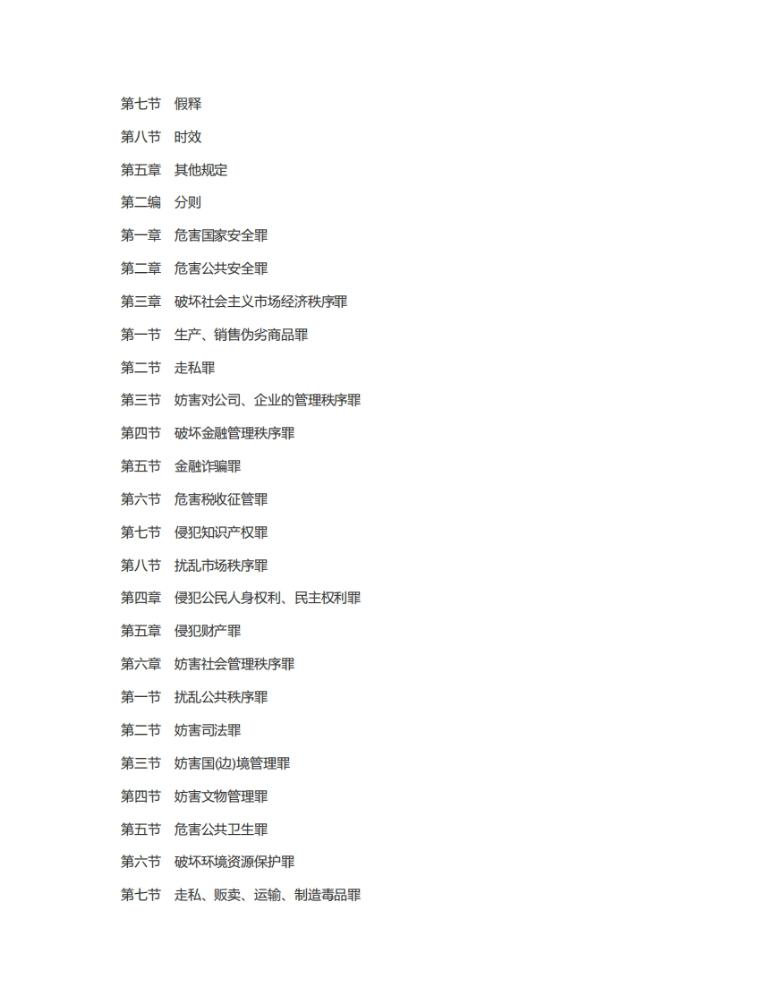 《中华人民共和国刑法》348072@abc3个月前发布关注私信0.94MB85页0486《中华人民共和国刑法》此内容为付费资源,请付费后查看¥19¥22黄金会员免费钻石会员免费立即购买您当前未登录!建议登陆后购买,可保存购买订单付费资源 第1页 / 共85页 第2页 / 共85页 试读已结束,还剩83页,您可下载完整版后进行离线阅读 © 版权声明文章版权归作者所有,未经允许请勿转载。THE END标准规范 文本预览 中华人民共和国刑法第一编总则第一章刑法的任务、基本原则和适用范围第二章犯罪第一节犯罪和刑事责任第二节犯罪的预备、未遂和中止第三节共同犯罪第四节单位犯罪第三章刑罚第一节刑罚的种类第二节管制第三节拘役第四节有期徒刑、无期徒刑第五节死刑第六节罚金第七节剥夺政治权利第八节没收财产第四章刑罚的具体运用第一节量刑第二节累犯第三节自首和立功第四节数罪并罚第五节缓刑第六节减刑 查看更多 收起部分 喜欢就支持一下吧点赞6 分享QQ空间微博QQ好友海报分享复制链接收藏