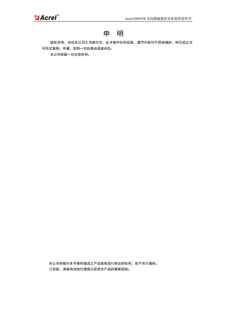 373Acrel-2000TB无线测温监控设备使用说明书V1.0348072@abc4个月前发布关注私信5.55MB76页033373Acrel-2000TB无线测温监控设备使用说明书V1.0此内容为付费资源,请付费后查看¥13¥19黄金会员免费钻石会员免费立即购买您当前未登录!建议登陆后购买,可保存购买订单付费资源 第1页 / 共76页 第2页 / 共76页 试读已结束,还剩74页,您可下载完整版后进行离线阅读 THE END说明书手册 喜欢就支持一下吧收藏