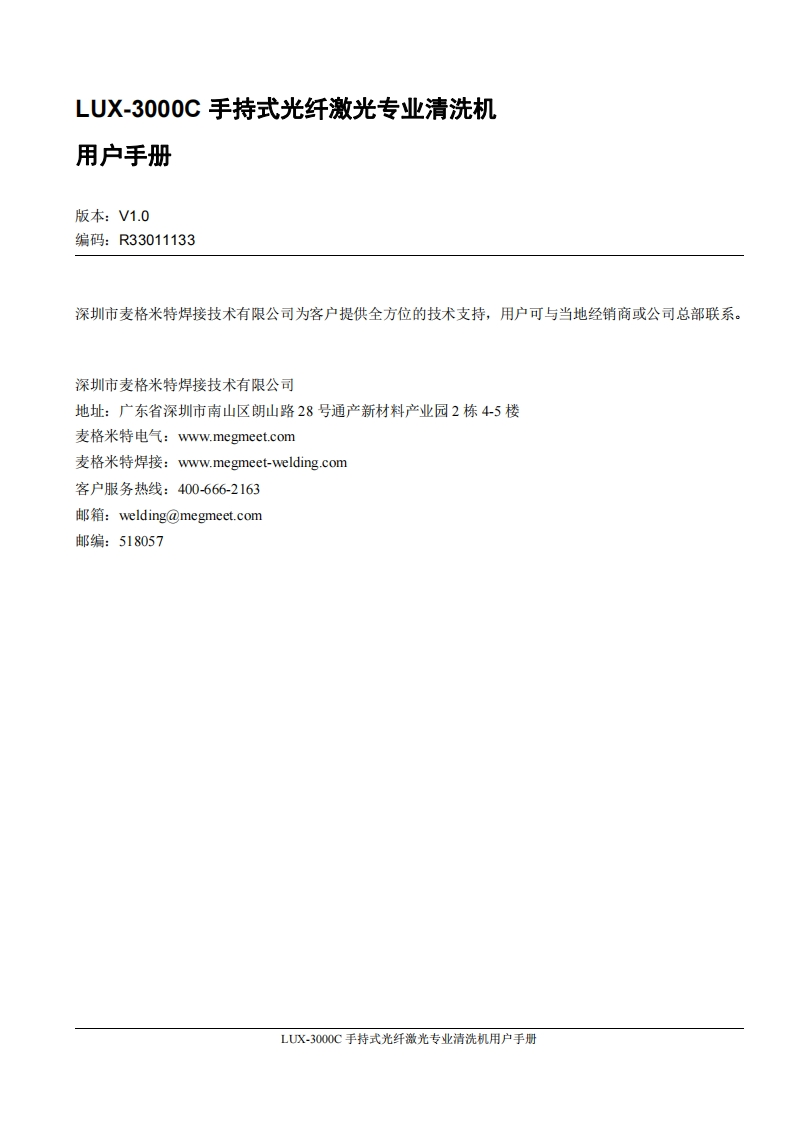 LUX-3000C手持式光纤激光专业清洗机使用说明书_V1.0348072@abc2个月前发布关注私信4.68MB35页030LUX-3000C手持式光纤激光专业清洗机使用说明书_V1.0此内容为付费资源,请付费后查看¥9¥13黄金会员免费钻石会员免费立即购买您当前未登录!建议登陆后购买,可保存购买订单付费资源 第1页 / 共35页 第2页 / 共35页 试读已结束,还剩33页,您可下载完整版后进行离线阅读 THE END说明书手册 喜欢就支持一下吧收藏
