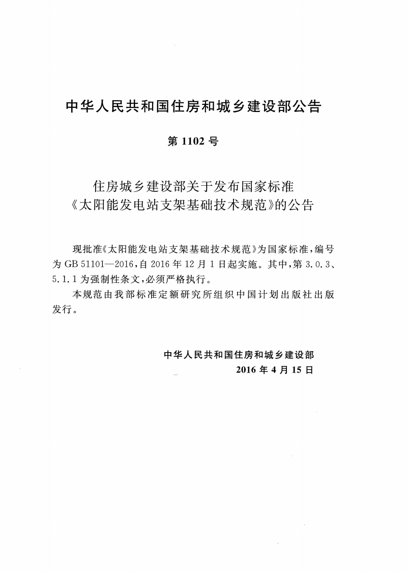 GB-51101-2016:太阳能发电站支架基础技术规范348072@abc2个月前发布关注私信4.51MB90页035GB-51101-2016:太阳能发电站支架基础技术规范此内容为付费资源,请付费后查看¥13¥19黄金会员免费钻石会员免费立即购买您当前未登录!建议登陆后购买,可保存购买订单付费资源 第1页 / 共90页 第2页 / 共90页 第3页 / 共90页 试读已结束,还剩87页,您可下载完整版后进行离线阅读 THE END标准规范法律法规 喜欢就支持一下吧收藏