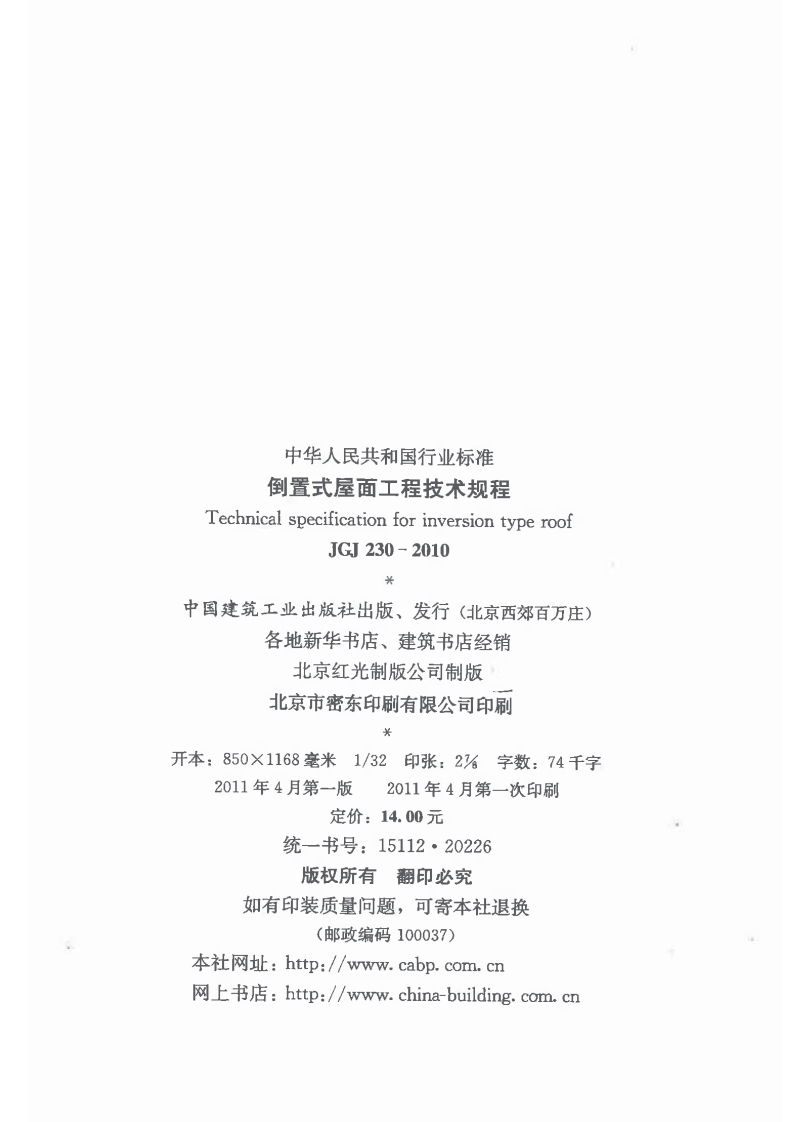 JGJ-230-2010:倒置式屋面工程技术规程348072@abc2个月前发布关注私信3.82MB86页036JGJ-230-2010:倒置式屋面工程技术规程此内容为付费资源,请付费后查看¥13¥19黄金会员免费钻石会员免费立即购买您当前未登录!建议登陆后购买,可保存购买订单付费资源 第1页 / 共86页 第2页 / 共86页 第3页 / 共86页 试读已结束,还剩83页,您可下载完整版后进行离线阅读 THE END标准规范 喜欢就支持一下吧收藏