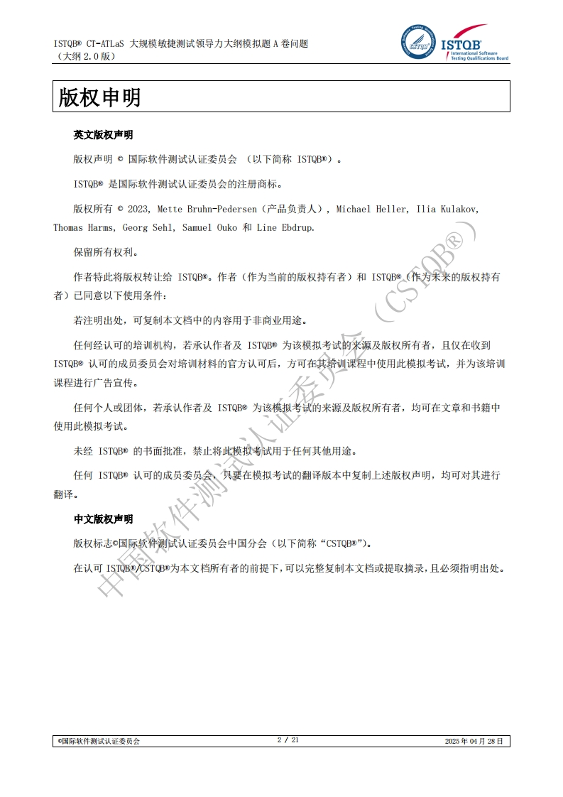 CT_ATLaS_大规模敏捷测试领导力2.0版模拟卷A问题v2.0_CN1.0(中文版)348072@abc1个月前发布关注私信1.28MB21页048CT_ATLaS_大规模敏捷测试领导力2.0版模拟卷A问题v2.0_CN1.0(中文版)此内容为付费资源,请付费后查看¥13¥19黄金会员免费钻石会员免费立即购买您当前未登录!建议登陆后购买,可保存购买订单付费资源 第1页 / 共21页 第2页 / 共21页 试读已结束,还剩19页,您可下载完整版后进行离线阅读 THE END初中教育医学类医疗医药单片机设计历史学类品牌营销哲学类土木工程学习资源小学教育标准规范高中教育高考真题 喜欢就支持一下吧收藏