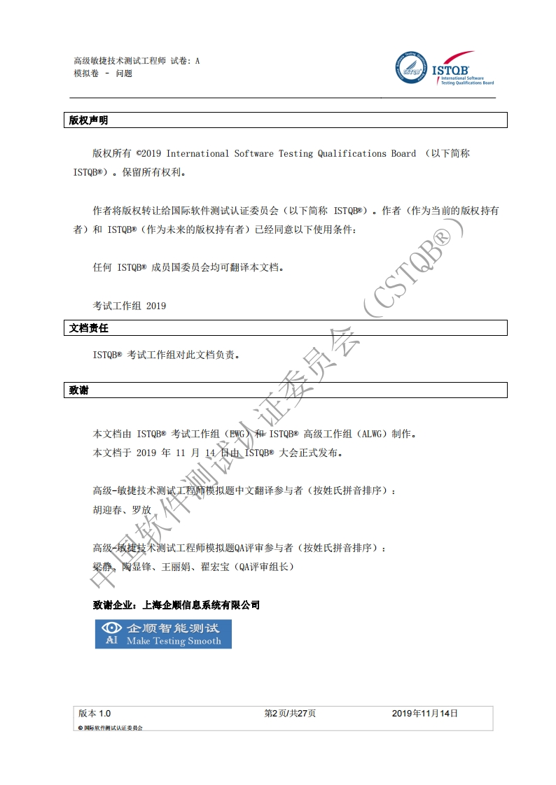 CTAL_ATT_敏捷技术测试工程师1.1版模拟卷问题A卷v1.0(中文版)348072@abc1个月前发布关注私信0.82MB27页026CTAL_ATT_敏捷技术测试工程师1.1版模拟卷问题A卷v1.0(中文版)此内容为付费资源,请付费后查看¥13¥19黄金会员免费钻石会员免费立即购买您当前未登录!建议登陆后购买,可保存购买订单付费资源 第1页 / 共27页 第2页 / 共27页 试读已结束,还剩25页,您可下载完整版后进行离线阅读 THE END初中教育医学类医疗医药单片机设计历史学类品牌营销哲学类土木工程学习资源小学教育标准规范高中教育高考真题 喜欢就支持一下吧收藏