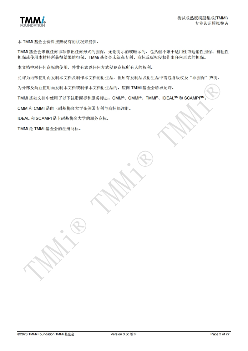 TMMi专业人员认证模拟卷A_V3.3c(中文版)_348072@abc1个月前发布关注私信0.96MB27页042TMMi专业人员认证模拟卷A_V3.3c(中文版)_此内容为付费资源,请付费后查看¥13¥19黄金会员免费钻石会员免费立即购买您当前未登录!建议登陆后购买,可保存购买订单付费资源 第1页 / 共27页 第2页 / 共27页 试读已结束,还剩25页,您可下载完整版后进行离线阅读 THE END医学类医疗医药单片机设计历史学类品牌营销哲学类土木工程学习资源高中教育高考真题 喜欢就支持一下吧收藏