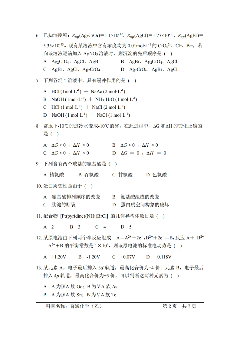普通化学(乙)入学考试试题348072@abc1个月前发布关注私信0.40MB7页035普通化学(乙)入学考试试题此内容为付费资源,请付费后查看¥13¥19黄金会员免费钻石会员免费立即购买您当前未登录!建议登陆后购买,可保存购买订单付费资源 第1页 / 共7页 第2页 / 共7页 试读已结束,还剩5页,您可下载完整版后进行离线阅读 THE END医学类医疗医药单片机设计历史学类品牌营销哲学类土木工程学习资源高中教育高考真题 喜欢就支持一下吧收藏