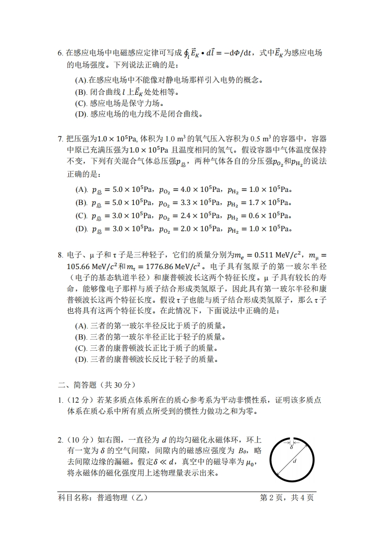 普通物理(乙)入学考试试题348072@abc1个月前发布关注私信0.71MB4页039普通物理(乙)入学考试试题此内容为付费资源,请付费后查看¥13¥19黄金会员免费钻石会员免费立即购买您当前未登录!建议登陆后购买,可保存购买订单付费资源 第1页 / 共4页 第2页 / 共4页 试读已结束,还剩2页,您可下载完整版后进行离线阅读 THE END医学类医疗医药单片机设计历史学类品牌营销哲学类土木工程学习资源高中教育高考真题 喜欢就支持一下吧收藏