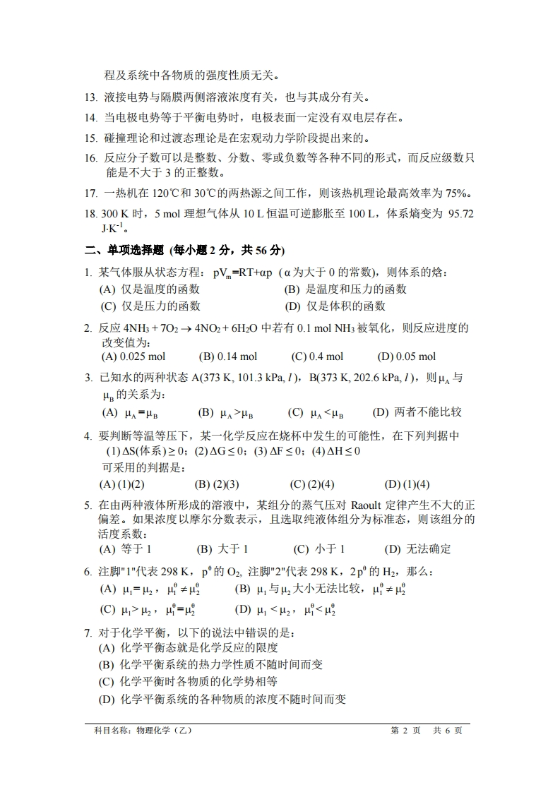 物理化学(乙)入学考试试题348072@abc1个月前发布关注私信0.32MB6页035物理化学(乙)入学考试试题此内容为付费资源,请付费后查看¥13¥19黄金会员免费钻石会员免费立即购买您当前未登录!建议登陆后购买,可保存购买订单付费资源 第1页 / 共6页 第2页 / 共6页 试读已结束,还剩4页,您可下载完整版后进行离线阅读 THE END医学类医疗医药单片机设计历史学类品牌营销哲学类土木工程学习资源高中教育高考真题 喜欢就支持一下吧收藏