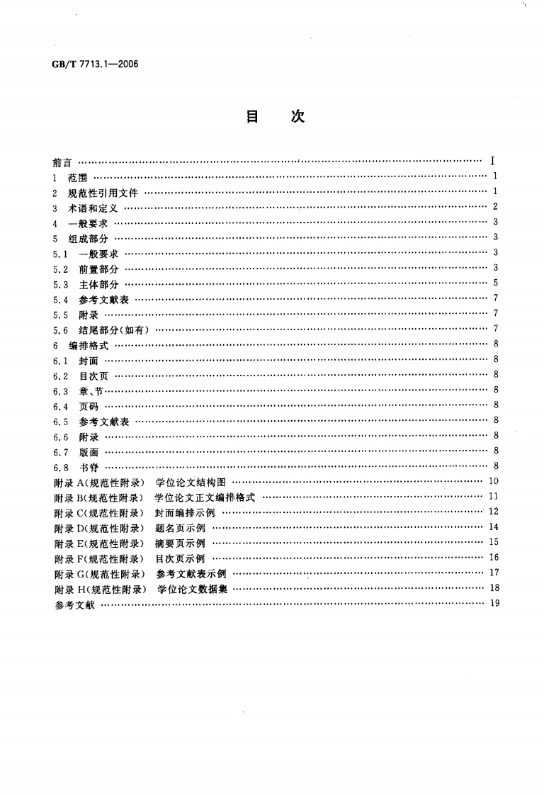1CS35.240.30A14GB中华人民共和国国家标准GB/T7713.1-2006部分代替GB/T7713一1987学位论文编写规则Presentation of theses and dissertations(ISO 7144:1986,Documentation-Presentation of theses and similar documents,NEQ)2006-12-05发布2007-05-01实施中华人民共和国国家质量监督检验检疫总局中国国家标准化管理委员会发布
