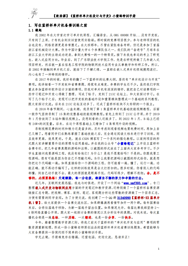 【欧浩源】《蓝桥杯单片机设计与开发》小蜜蜂特训手册348072@abc4个月前发布关注私信1.02MB16页030【欧浩源】《蓝桥杯单片机设计与开发》小蜜蜂特训手册此内容为付费资源,请付费后查看¥13¥19黄金会员免费钻石会员免费立即购买您当前未登录!建议登陆后购买,可保存购买订单付费资源 第1页 / 共16页 第2页 / 共16页 第3页 / 共16页 第4页 / 共16页 试读已结束,还剩12页,您可下载完整版后进行离线阅读 THE END说明书手册 喜欢就支持一下吧收藏
