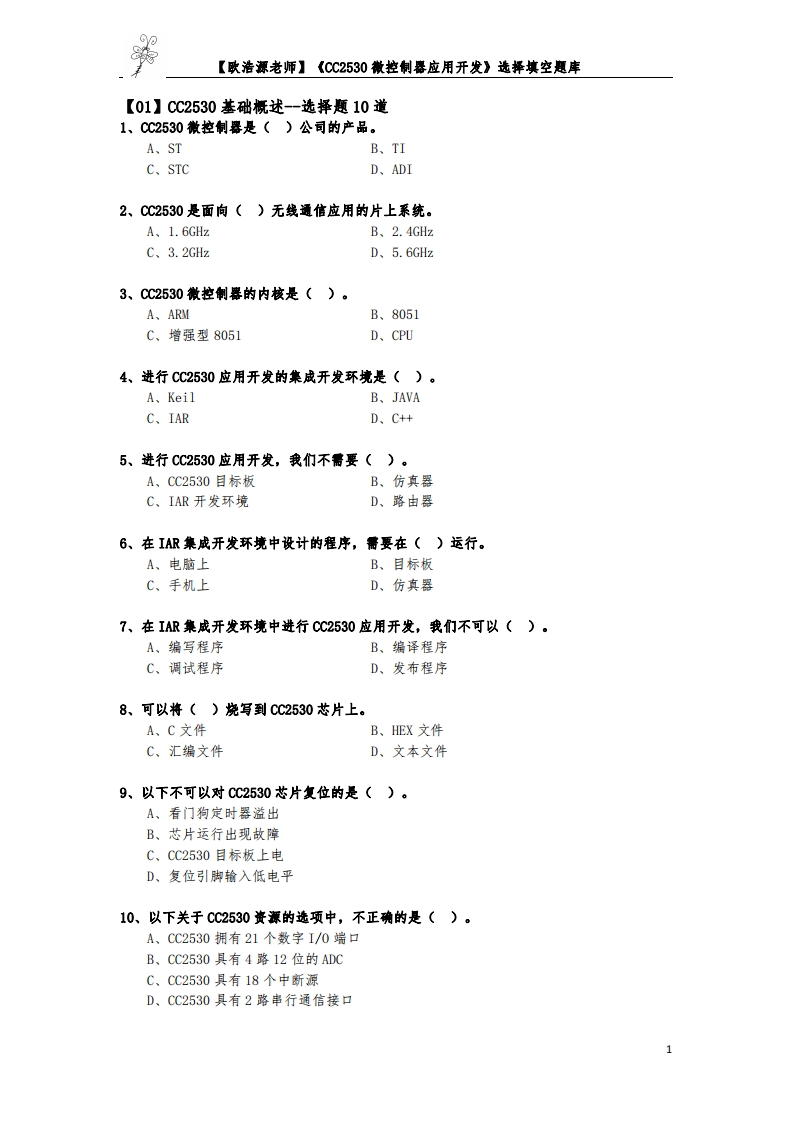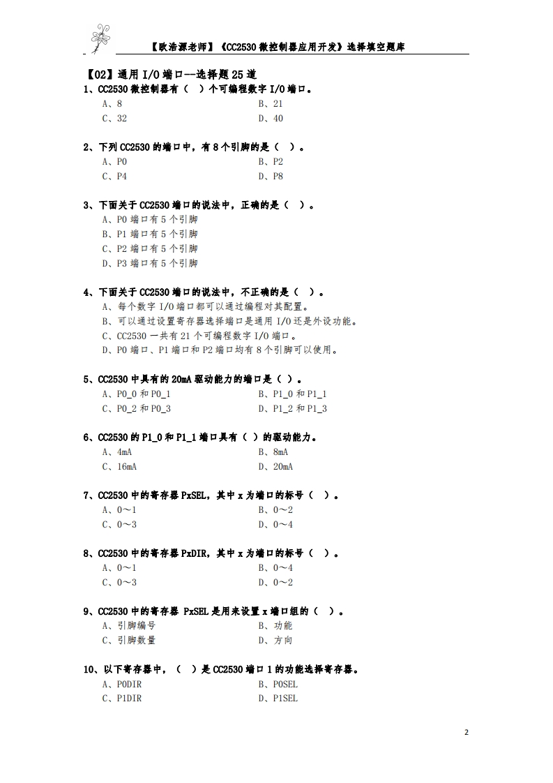 【小蜜蜂题库】《CC2530微控制器应用开发》选择填空题库348072@abc4个月前发布关注私信0.32MB20页047【小蜜蜂题库】《CC2530微控制器应用开发》选择填空题库此内容为付费资源,请付费后查看¥13¥19黄金会员免费钻石会员免费立即购买您当前未登录!建议登陆后购买,可保存购买订单付费资源 第1页 / 共20页 第2页 / 共20页 第3页 / 共20页 第4页 / 共20页 试读已结束,还剩16页,您可下载完整版后进行离线阅读 THE END说明书手册 喜欢就支持一下吧收藏