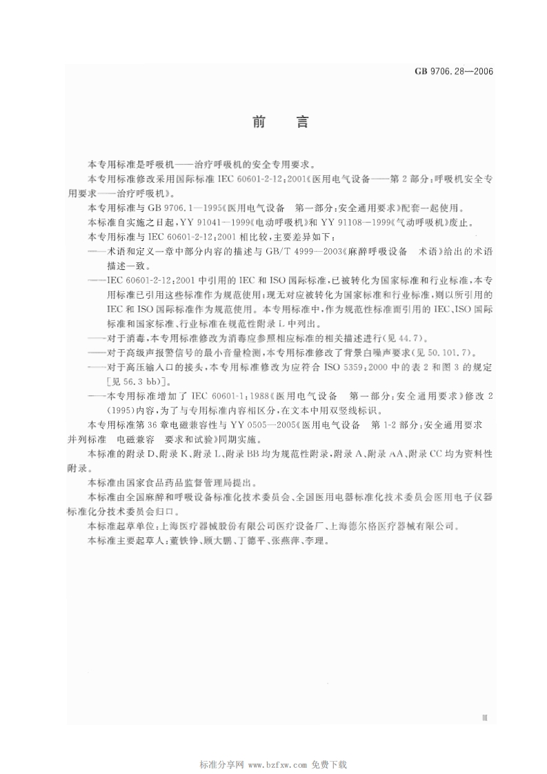 GB-9706.28-2006-医用电气设备-第2部分:呼吸机安全专用要求-治疗呼吸机348072@abc2个月前发布关注私信3.66MB53页047GB-9706.28-2006-医用电气设备-第2部分:呼吸机安全专用要求-治疗呼吸机此内容为付费资源,请付费后查看¥17¥19黄金会员免费钻石会员免费立即购买您当前未登录!建议登陆后购买,可保存购买订单付费资源 第1页 / 共53页 第2页 / 共53页 第3页 / 共53页 第4页 / 共53页 第5页 / 共53页 试读已结束,还剩48页,您可下载完整版后进行离线阅读 THE END标准规范 喜欢就支持一下吧收藏
