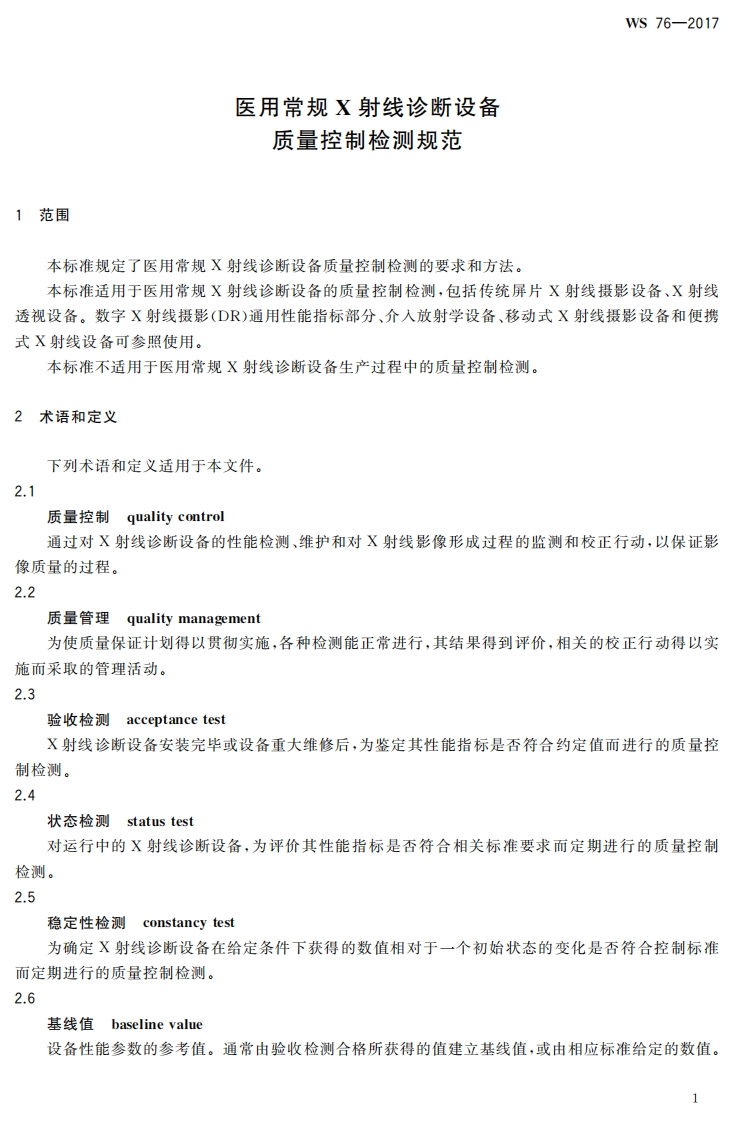 WS-76-2017医用常规X射线诊断设备质量控制检测规范348072@abc2个月前发布关注私信1.24MB19页028WS-76-2017医用常规X射线诊断设备质量控制检测规范此内容为付费资源,请付费后查看¥13¥15黄金会员免费钻石会员免费立即购买您当前未登录!建议登陆后购买,可保存购买订单付费资源 第1页 / 共19页 第2页 / 共19页 第3页 / 共19页 第4页 / 共19页 第5页 / 共19页 试读已结束,还剩14页,您可下载完整版后进行离线阅读 THE END标准规范 喜欢就支持一下吧收藏