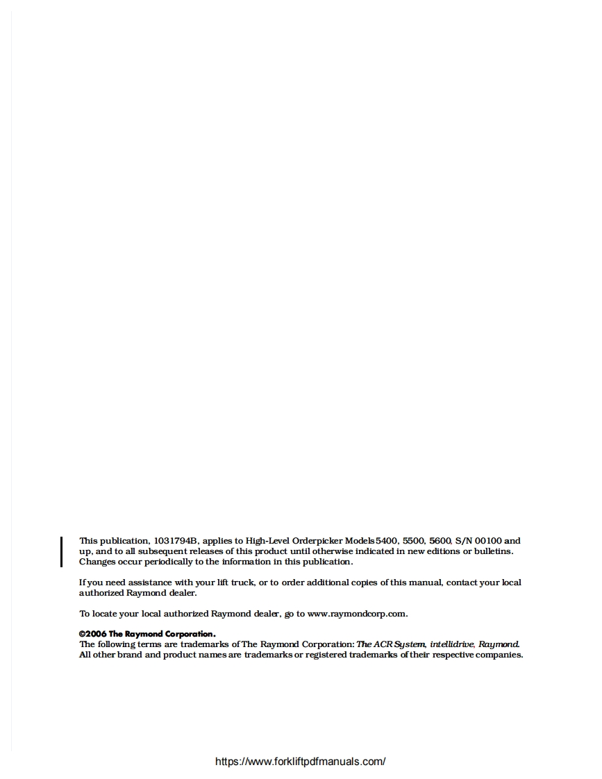 Raymond-5400-5500-5600-Orderpicker-Lift-Truck-维修手册-PDF348072@abc12天前发布关注私信6.88MB148页0467Raymond-5400-5500-5600-Orderpicker-Lift-Truck-维修手册-PDF此内容为付费资源,请付费后查看¥13¥19黄金会员免费钻石会员免费立即购买您当前未登录!建议登陆后购买,可保存购买订单付费资源 第1页 / 共148页 第2页 / 共148页 第3页 / 共148页 第4页 / 共148页 第5页 / 共148页 试读已结束,还剩143页,您可下载完整版后进行离线阅读 © 版权声明文章版权归作者所有,未经允许请勿转载。THE END说明书手册 喜欢就支持一下吧点赞7 分享QQ空间微博QQ好友海报分享复制链接收藏