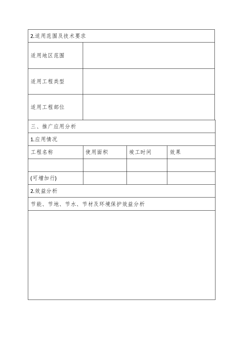 2绿色建筑技术与产品推荐目录申报书(技术类)348072@abc5个月前发布关注私信13.53KB2页0412绿色建筑技术与产品推荐目录申报书(技术类)此内容为付费资源,请付费后查看¥17¥22黄金会员免费钻石会员免费立即购买您当前未登录!建议登陆后购买,可保存购买订单付费资源 第1页 / 共2页 第2页 / 共2页 已完成全部阅读,共2页 THE END标准规范 文本预览 附件2《广东省建筑节能协会绿色建筑技术与产品推荐目录》申报书(技术类)一、基本情况申报单位单位地址邮政编码人员情况姓名电话传真电子邮箱法定代表联系产品名称规格型号检测报告编号(可增加行)申()1.营业执照复印件,代理企业的代理合同复印件:报()2.执行标准名称:标准号:材()3.技术鉴定报告复印件料()4.技术应用指南或手册;清()5.主要工程应用清单(含工程名称,使用建筑面积、时间、效单果等):二、内容1.主要技术性能及特点(文字描述,电子版产品图片6张dpi800*800打包) 查看更多 收起部分 喜欢就支持一下吧收藏