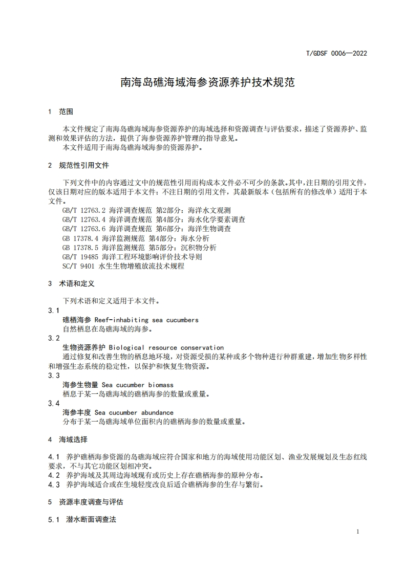 《南海岛礁海域海参资源养护技术规范》348072@abc8天前发布关注私信0.95MB8页02115《南海岛礁海域海参资源养护技术规范》此内容为付费资源,请付费后查看¥13¥19黄金会员免费钻石会员免费立即购买您当前未登录!建议登陆后购买,可保存购买订单付费资源 第1页 / 共8页 第2页 / 共8页 第3页 / 共8页 第4页 / 共8页 第5页 / 共8页 试读已结束,还剩3页,您可下载完整版后进行离线阅读 © 版权声明文章版权归作者所有,未经允许请勿转载。THE END标准规范 文本预览 ICS65.150CCS B 50TGDSF广东水产学会团体标准T/GDSF0006-2022南海岛礁海域海参资源养护技术规范Technical specifications for resources conservation of reef-inhabiting sea cucumbersin South China Sea2022-11-30发布2022-12-1实施广东水产学会发布 查看更多 收起部分 喜欢就支持一下吧点赞15 分享QQ空间微博QQ好友海报分享复制链接收藏