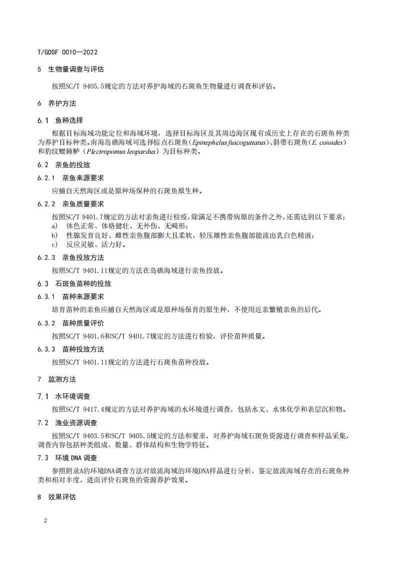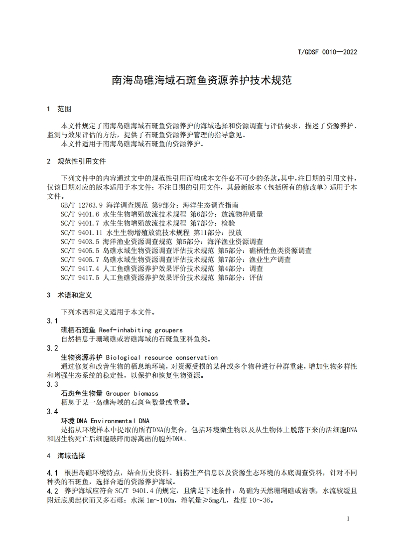 《南海岛礁海域石斑鱼资源养护技术规范》348072@abc9天前发布关注私信0.86MB8页0277《南海岛礁海域石斑鱼资源养护技术规范》此内容为付费资源,请付费后查看¥13¥19黄金会员免费钻石会员免费立即购买您当前未登录!建议登陆后购买,可保存购买订单付费资源 第1页 / 共8页 第2页 / 共8页 第3页 / 共8页 第4页 / 共8页 第5页 / 共8页 试读已结束,还剩3页,您可下载完整版后进行离线阅读 © 版权声明文章版权归作者所有,未经允许请勿转载。THE END标准规范 文本预览 ICS65.150CCS B 50TGDSF广东水产学会团体标准T/GDSF0010-2022南海岛礁海域石斑鱼资源养护技术规范Technical specifications for resource conservation of reef-inhabiting groupers in theSouth China Sea2022-11-30发布2022-12-1实施广东水产学会发布 查看更多 收起部分 喜欢就支持一下吧点赞7 分享QQ空间微博QQ好友海报分享复制链接收藏