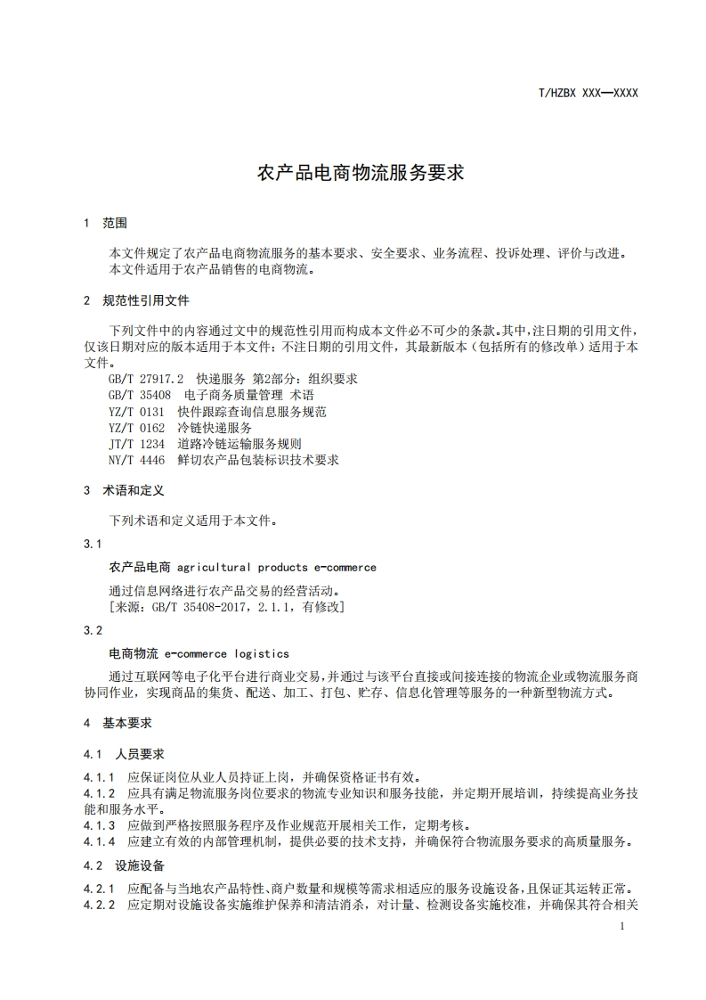 《农产品电商物流服务要求》(征求意见稿)348072@abc3个月前发布关注私信0.22MB6页031《农产品电商物流服务要求》(征求意见稿)此内容为付费资源,请付费后查看¥13¥19黄金会员免费钻石会员免费立即购买您当前未登录!建议登陆后购买,可保存购买订单付费资源 第1页 / 共6页 第2页 / 共6页 第3页 / 共6页 第4页 / 共6页 第5页 / 共6页 试读已结束,还剩1页,您可下载完整版后进行离线阅读 THE END标准规范 文本预览 ICS03.080.99CCS A 16团体标准T/HZBX XXX-XXXX农产品电商物流服务要求Requirements for e-commerce logistics services for agricultural products(征求意见稿)XXXx-XX-Xx发布XXXX-Xx-XX实施惠州市标准化协会发布 查看更多 收起部分 喜欢就支持一下吧收藏