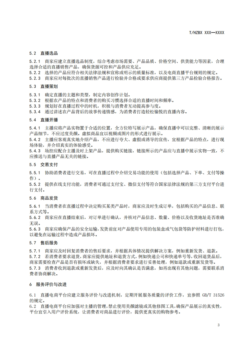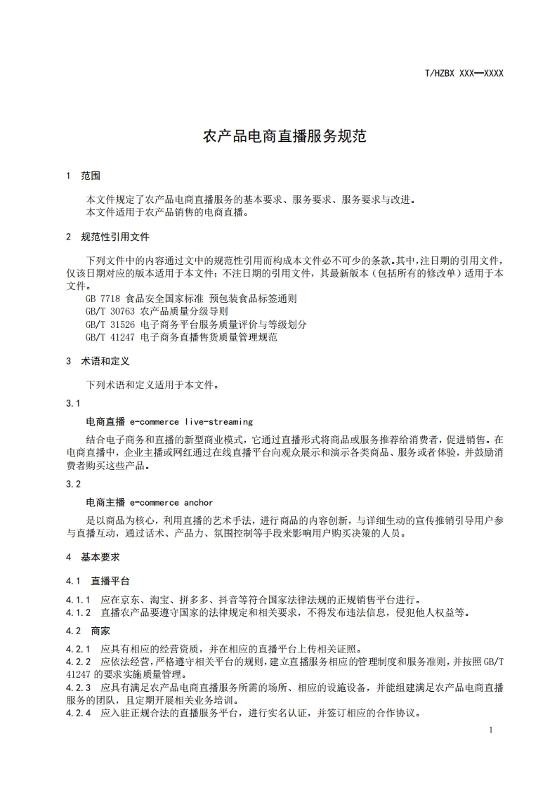 《农产品电商直播服务规范》(征求意见稿)348072@abc3个月前发布关注私信0.24MB6页041《农产品电商直播服务规范》(征求意见稿)此内容为付费资源,请付费后查看¥13¥19黄金会员免费钻石会员免费立即购买您当前未登录!建议登陆后购买,可保存购买订单付费资源 第1页 / 共6页 第2页 / 共6页 第3页 / 共6页 第4页 / 共6页 第5页 / 共6页 试读已结束,还剩1页,您可下载完整版后进行离线阅读 THE END标准规范 文本预览 ICS03.080.99CCS A 16团体标准T/HZBX XXX-XXXX农产品电商直播服务规范Specifications for live broadcast services for e-commerce ofagricultural products(征求意见稿)XXXx-XX-Xx发布XXXX-Xx-XX实施惠州市标准化协会发布 查看更多 收起部分 喜欢就支持一下吧收藏