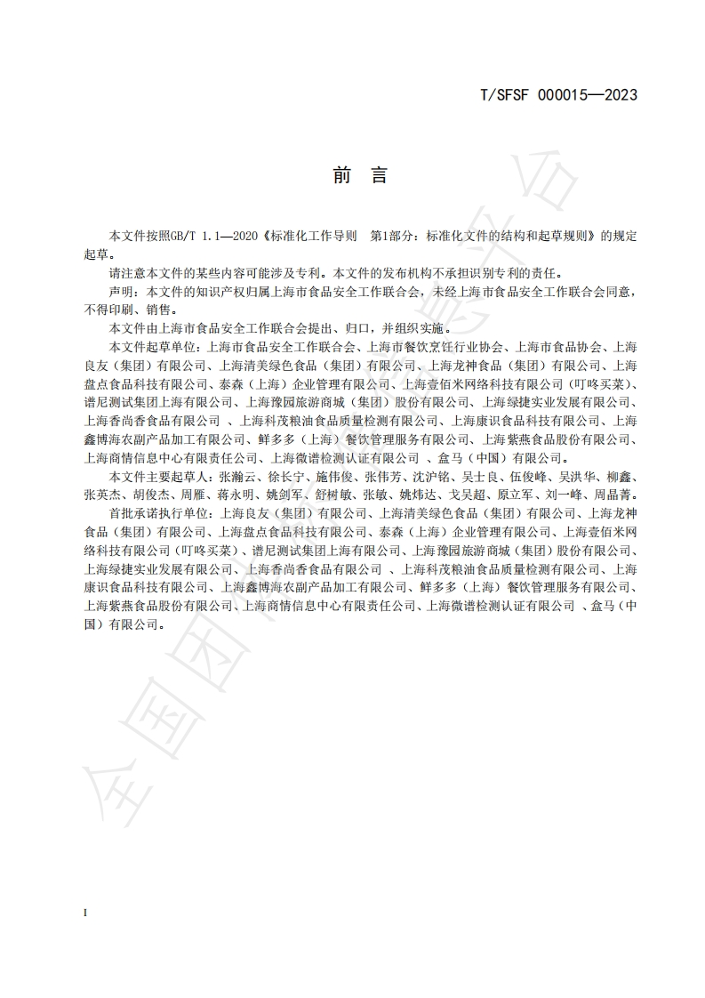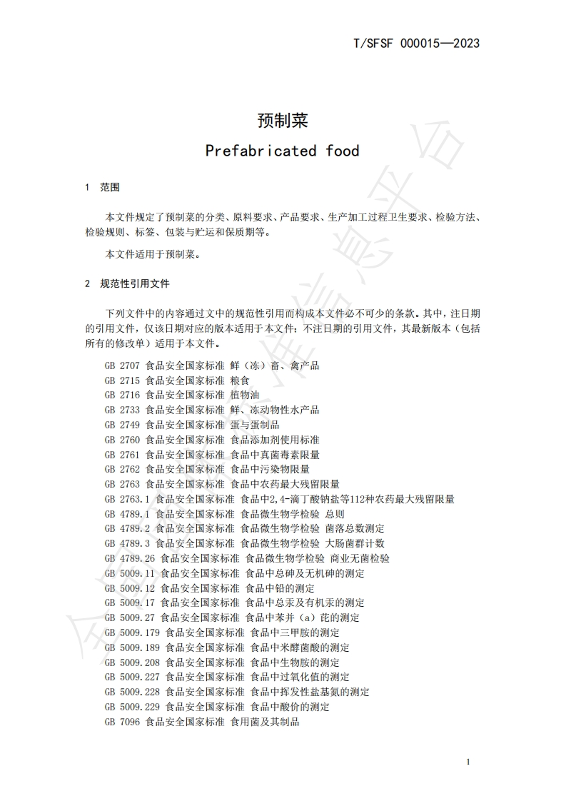 《预制菜》T_SFSF-000015-2023348072@abc1个月前发布关注私信0.29MB15页025《预制菜》T_SFSF-000015-2023此内容为付费资源,请付费后查看¥13¥19黄金会员免费钻石会员免费立即购买您当前未登录!建议登陆后购买,可保存购买订单付费资源 第1页 / 共15页 第2页 / 共15页 第3页 / 共15页 第4页 / 共15页 第5页 / 共15页 试读已结束,还剩10页,您可下载完整版后进行离线阅读 THE END标准规范 文本预览 1CS67.040CCS X 10团体标1T准T/SFSF000015-2023预制菜Prefabricated food国团体标2023-07-05发布2023-10-05实施上海市食品安全工作联合会发布 查看更多 收起部分 喜欢就支持一下吧收藏